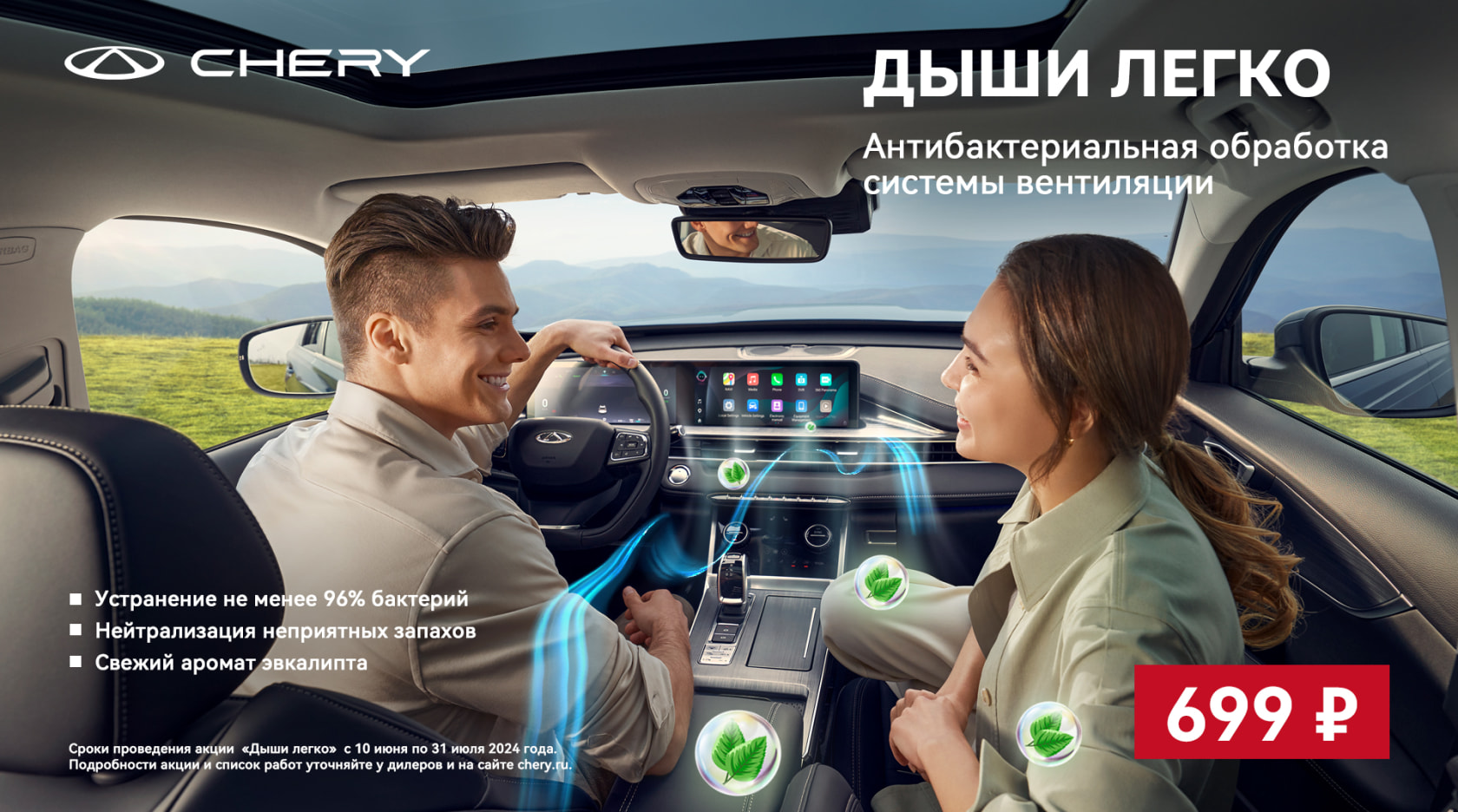 Дышите легко в салоне вашего CHERY и наслаждайтесь летними впечатлениями!